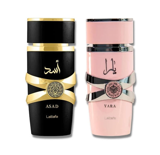 Pack of 2 Pieces of Eau de Parfum Lattafa (Asad for Men + Yara for Women) 3.4 oz/100 ml each