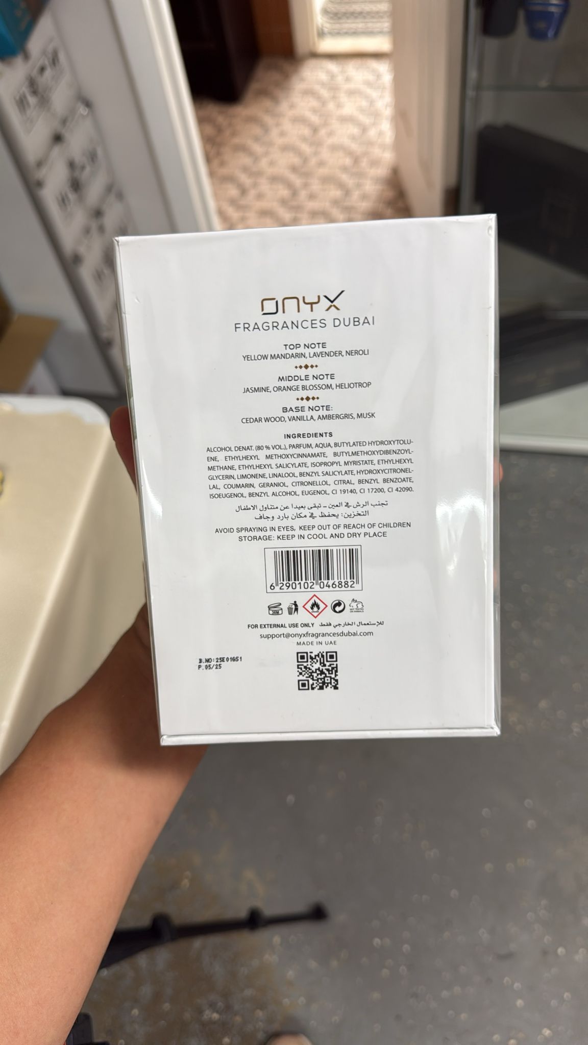 The scent opens with a radiant blend of yellow mandarin, neroli, and lavender, creating a bright yet smooth introduction. The heart reveals a delicate floral bouquet of jasmine, heliotrope, and orange blossom—feminine and silky. As it dries down, Karma Onyx lingers on the skin with a rich fusion of cedarwood, ambergris, vanilla, and musk, leaving a warm and captivating trail that feels both modern and timeless.